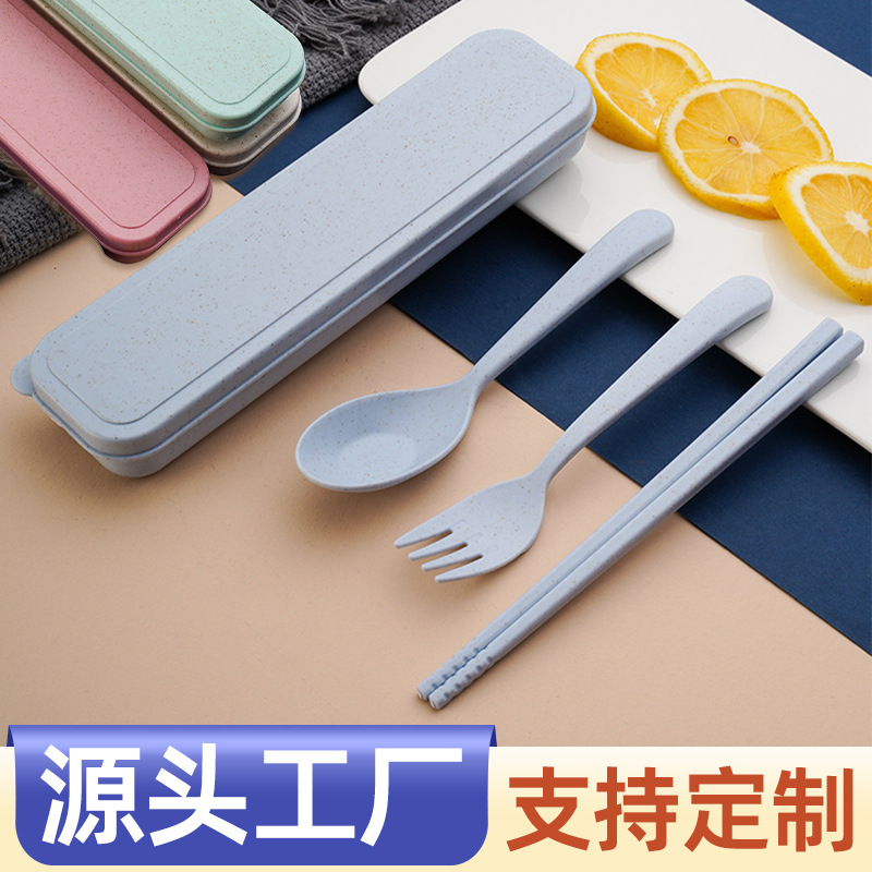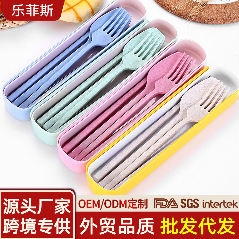小麦わらフォークスプーン箸プラスチック食器携帯型屋外旅行小麦三点セット食器セット卸売り