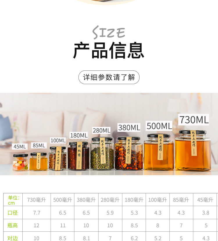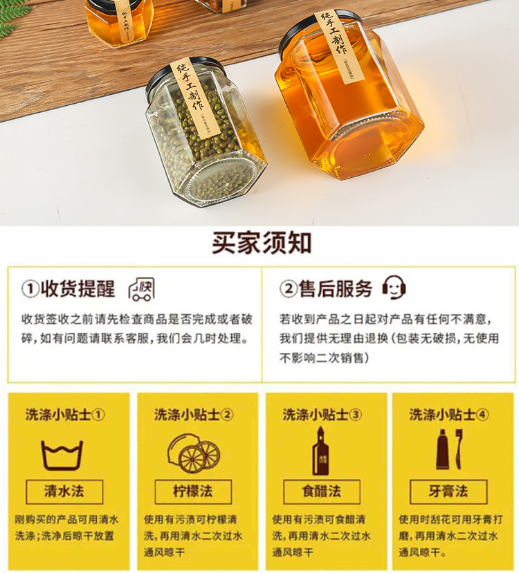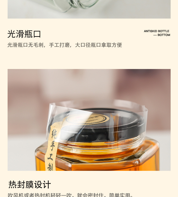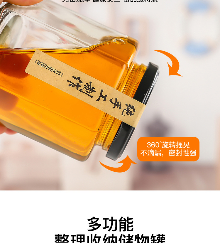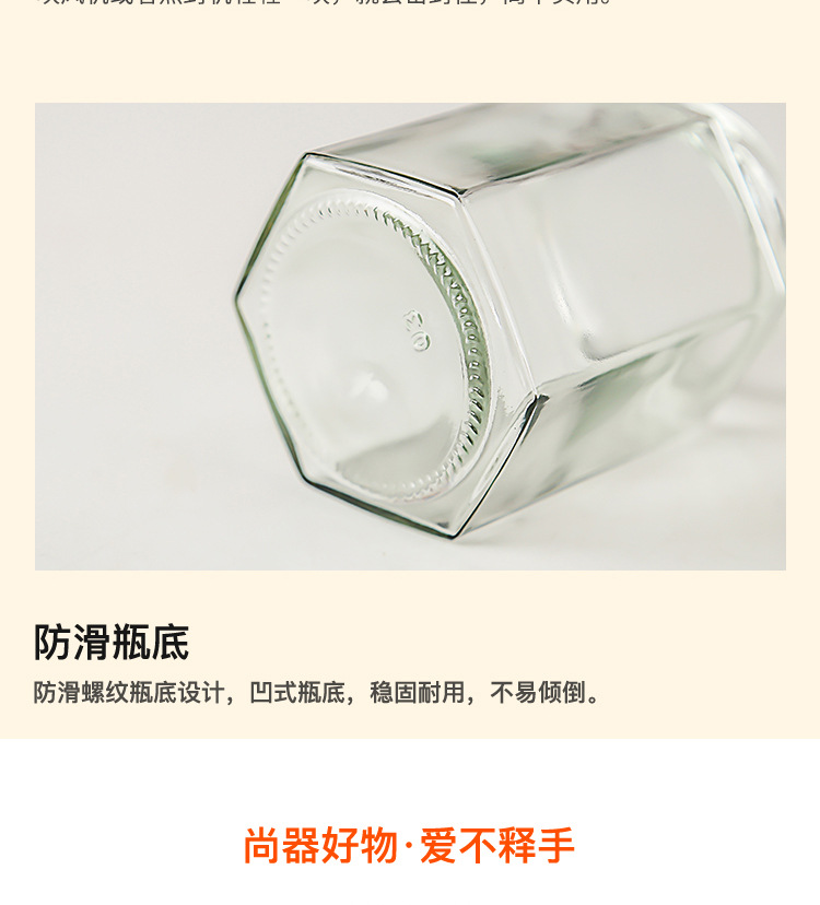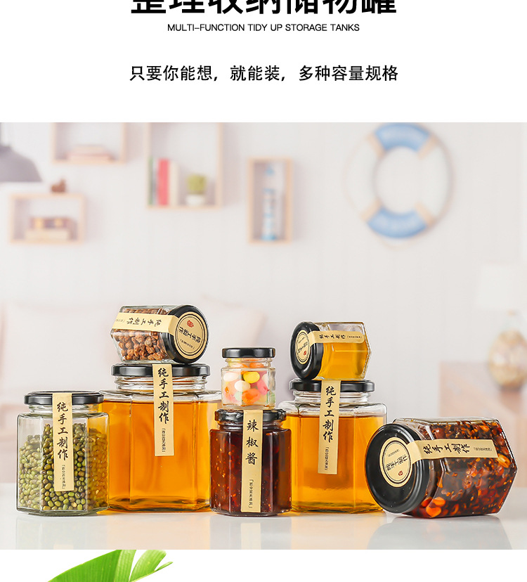 メーカー卸売り380mlガラス六稜蜂蜜瓶透明味噌汁瓶密封ジャム瓶500グラム蜂蜜瓶