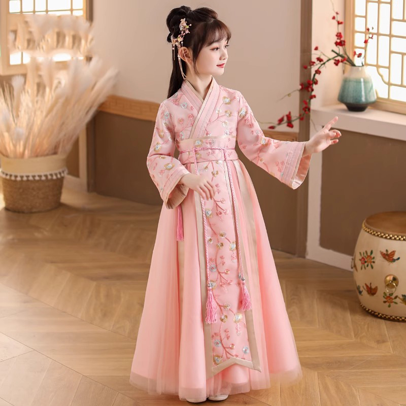 漢服女児服2026年新作冬古装中国風ルースカート妖精のような舞踊衣装子供用ツーピース旗袍唐装