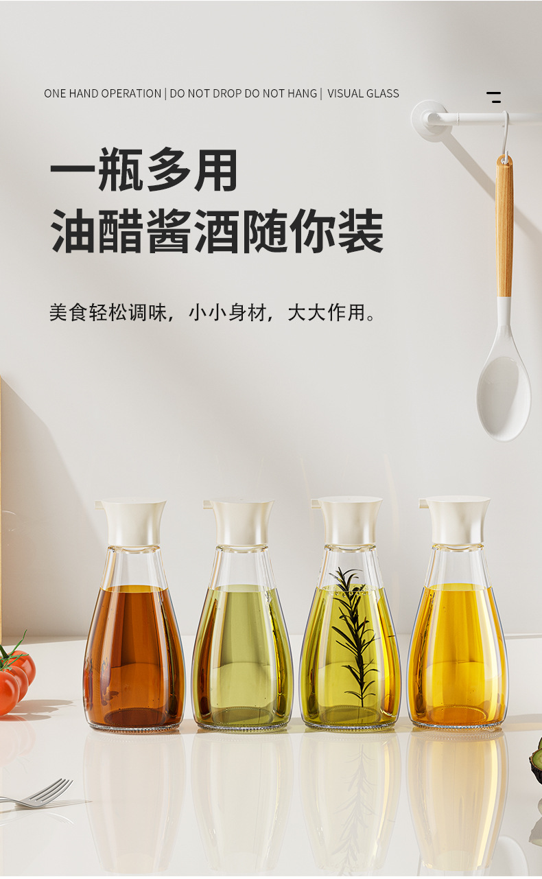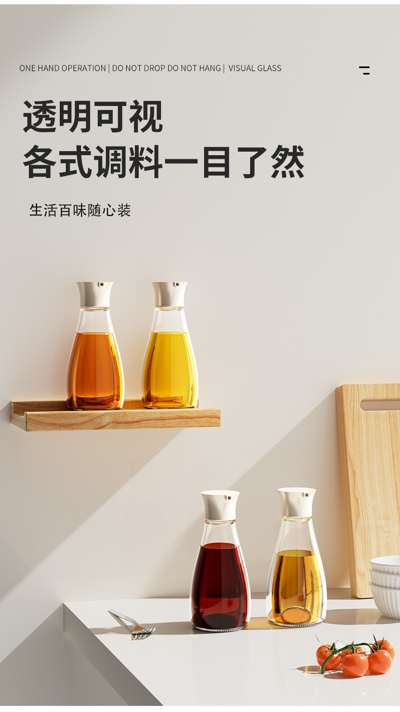 高ホウ素シリコンガラスオイルボトル小油ポット缶醤油酢調味料家庭用キッチン漏れ防止自動開閉目盛が厚くなる
