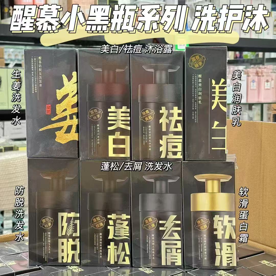 醒慕防脱发洗发水小黑瓶系列去屑蓬松生姜洗发水软滑蛋白霜沐浴露