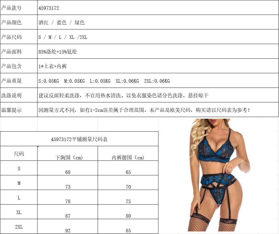 アマゾン欧米2023女性鋼輪レースは趣味の女性下着ガーターの3点セットの現物をつなぎ合わせた