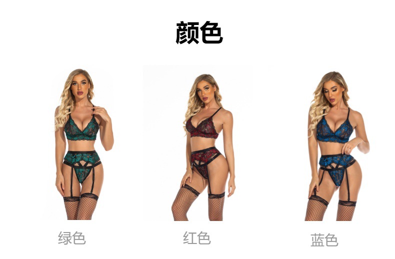 速売通趣味下着セットレース三点式調節可能肩ひも透視靴下下着三点セットスポット
