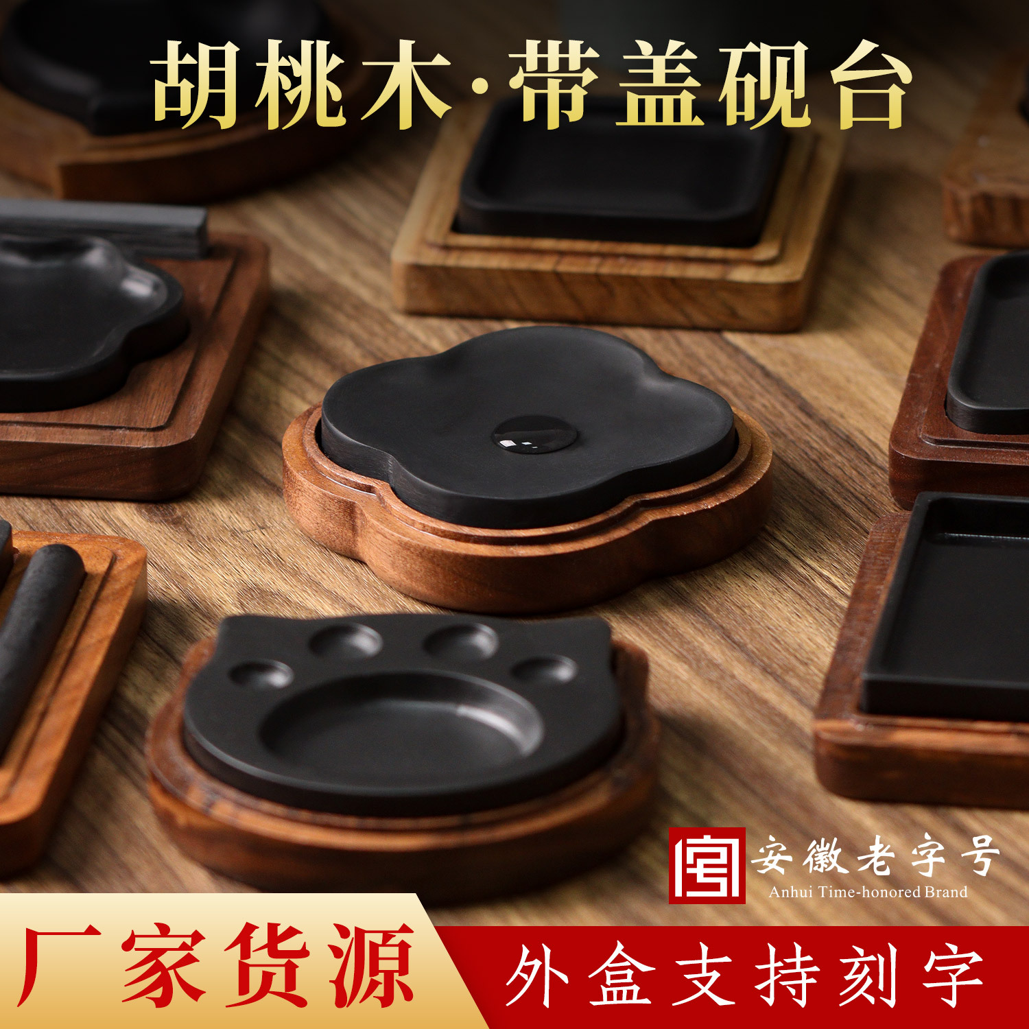 初学者便携砚台墨盒不干墨书法随身研磨小池墨碟送礼带盖墨盒砚台