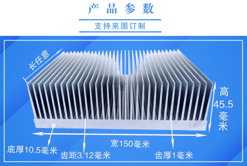 ヒートシンクアルミ形材高密度歯ヒートシンクインサート放熱器幅150mm * 高さ45.5アルミニウム合金アルミ板