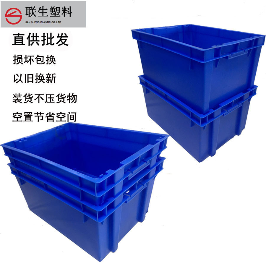プラスチック回転箱プラスチック箱長方形物流大型蓋付きゴム箱青色中継プラスチック枠回転かご