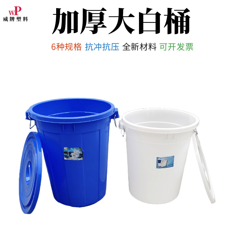 厚いプラスチックの白い桶の丸い蓋付きのプラスチック桶の貯水桶の酒造桶の台所でよく使われるプラスチックのゴミ箱
