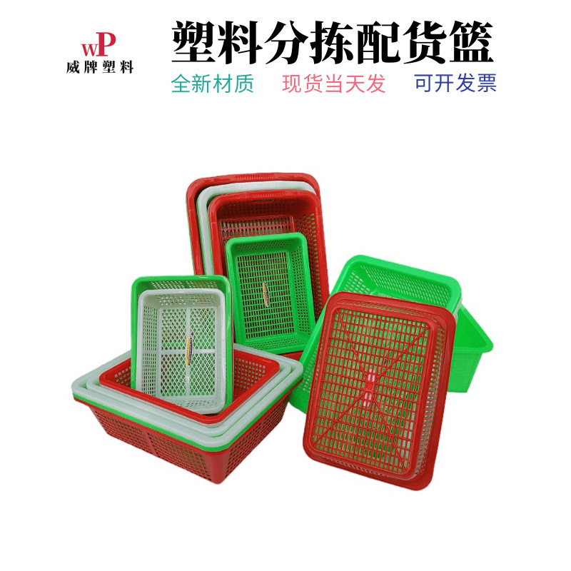 厚い長方形のプラスチックバスケットを収納してバスケットをふるいます。