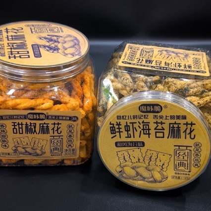 魔咔脆鲜虾麻花蟹黄300g海苔小麻花桶装罐装办公室休闲零食食品