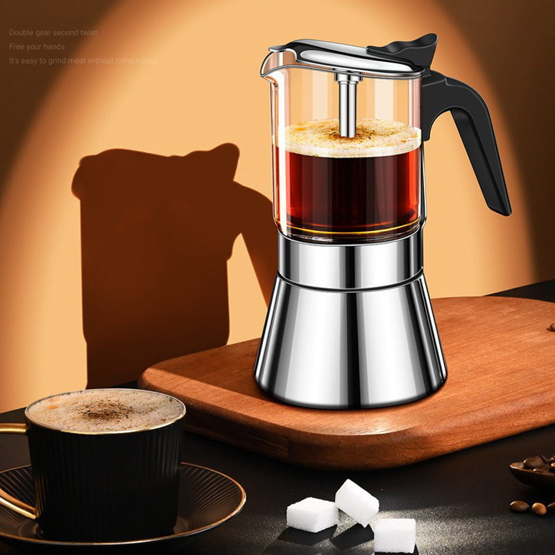 Seecinクロスボーダーモカポット家庭用ハンドプレスコーヒーポットコーヒー器具高ホウケイ酸ガラスポータブル