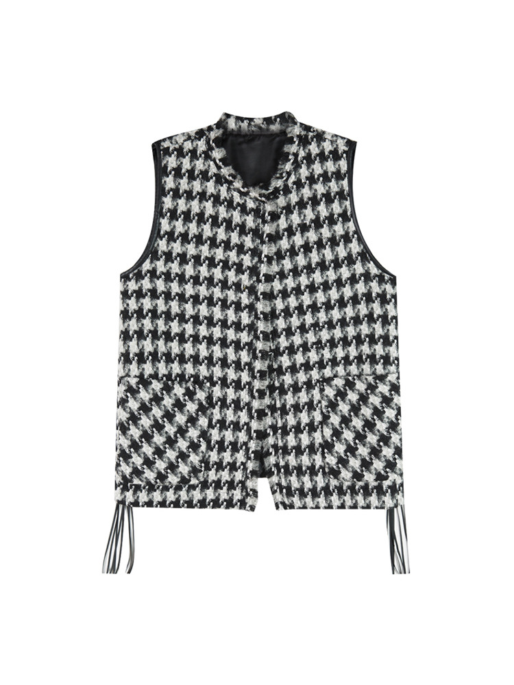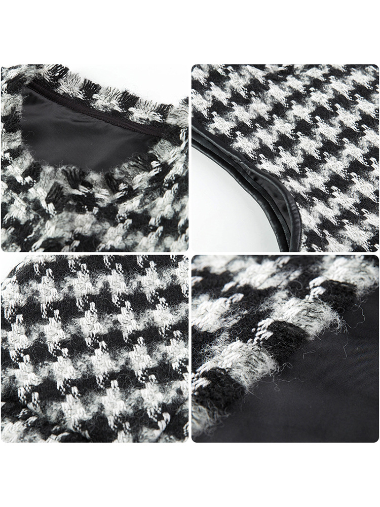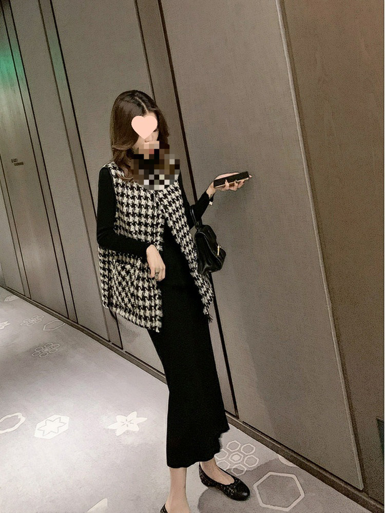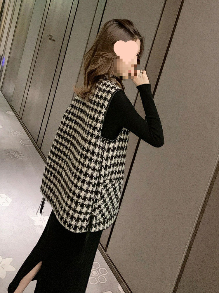 馬挟みのコートの女性の韓国版の小さい香風のベストの底のシャツの2セットは春秋の千鳥の格のカンカンの肩の毛のベストを詰めます。