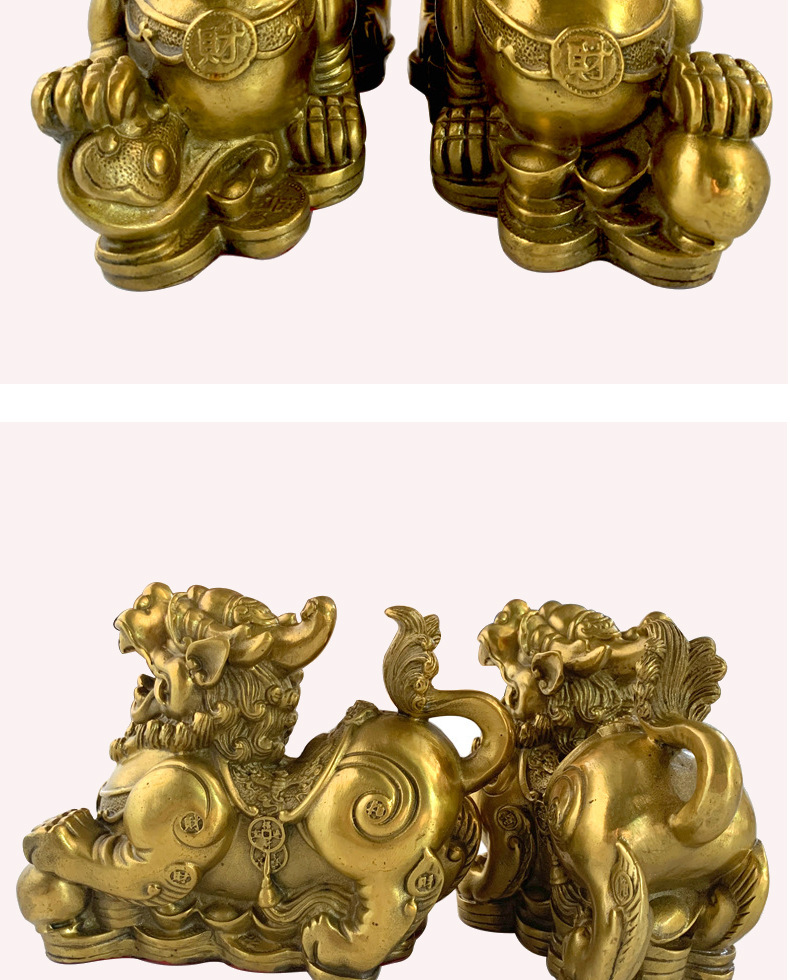 富と祝福を引き寄せる純粋な真鍮の貔貅の装飾品、富を集める貔貅、貔貅ユニコーン如意元宝、ホームリビングルームギフト