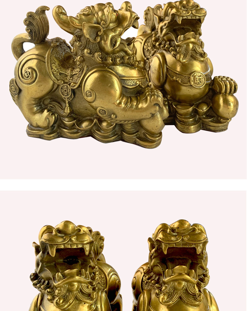 黄銅の財福のピシュピストの置物のペアの皮丘の神獣の客間の事務室の家の装飾の工芸品の店の置物