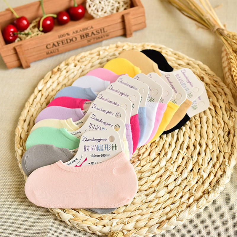 無地綿の靴下女性のキャンディー無地の女性の女性の靴下目に見えない浅い靴下ボートソックス裸の靴下 Zhuji 靴下卸売