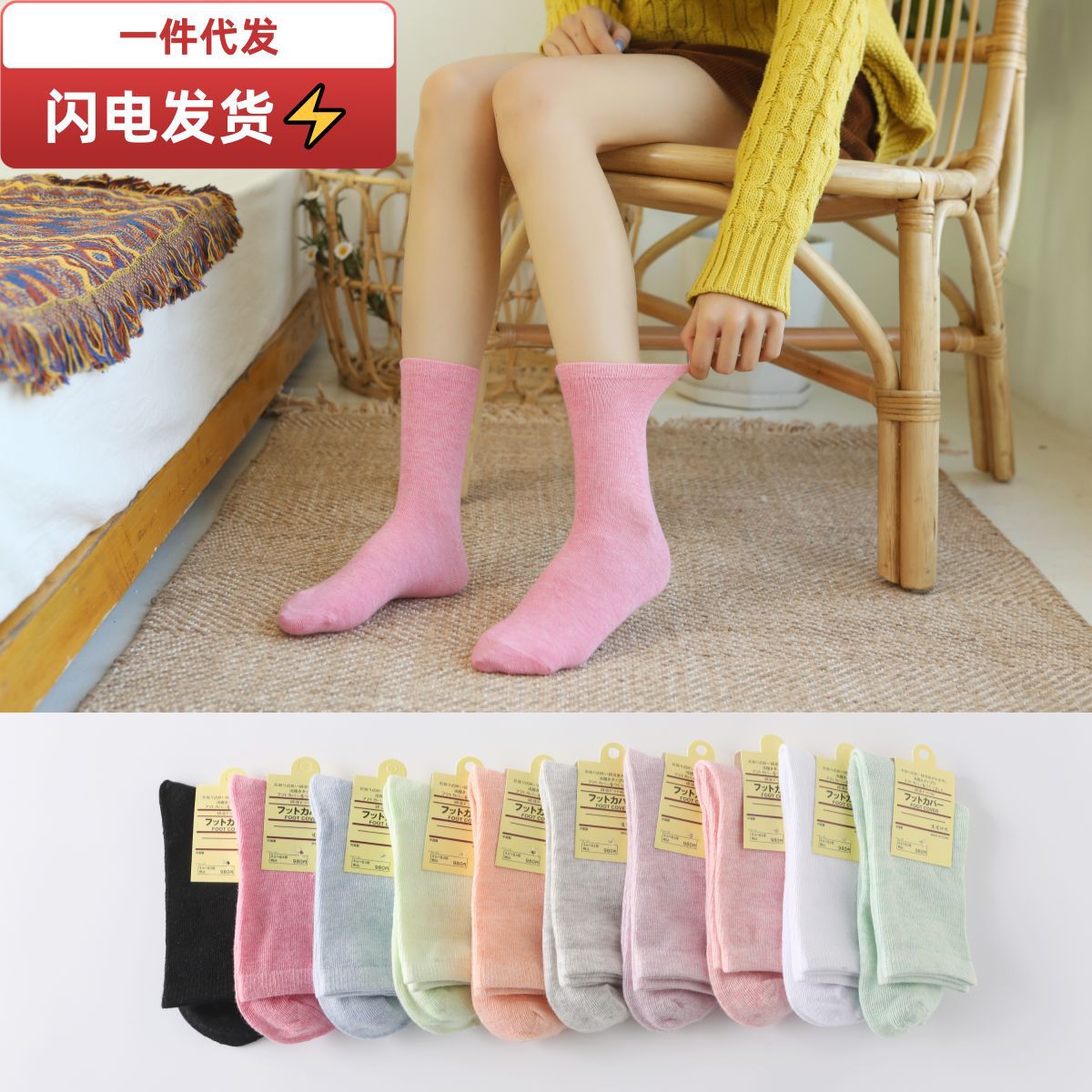 キャンディー色の女性の綿の靴下の純色の綿の高腰の中筒の女性の綿の靴下の秋冬の贈り物の靴下