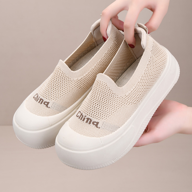 2025 秋の新フライング織メッシュ通気性中年女性の靴カジュアルシングルシューズトレンディなプラットフォームスニーカー