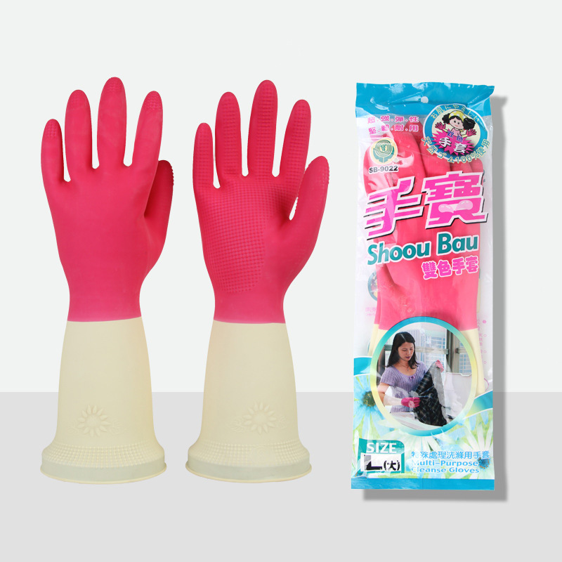 台湾手宝牌手袋9022 ツートンカラーラテックス手袋 家事掃除 洗濯 食器洗い エクストラロング手袋