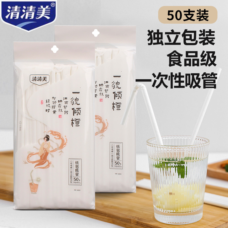 清清美ストロー使い捨て紙包装食品級プラスチック曲げストロー50本セット6021