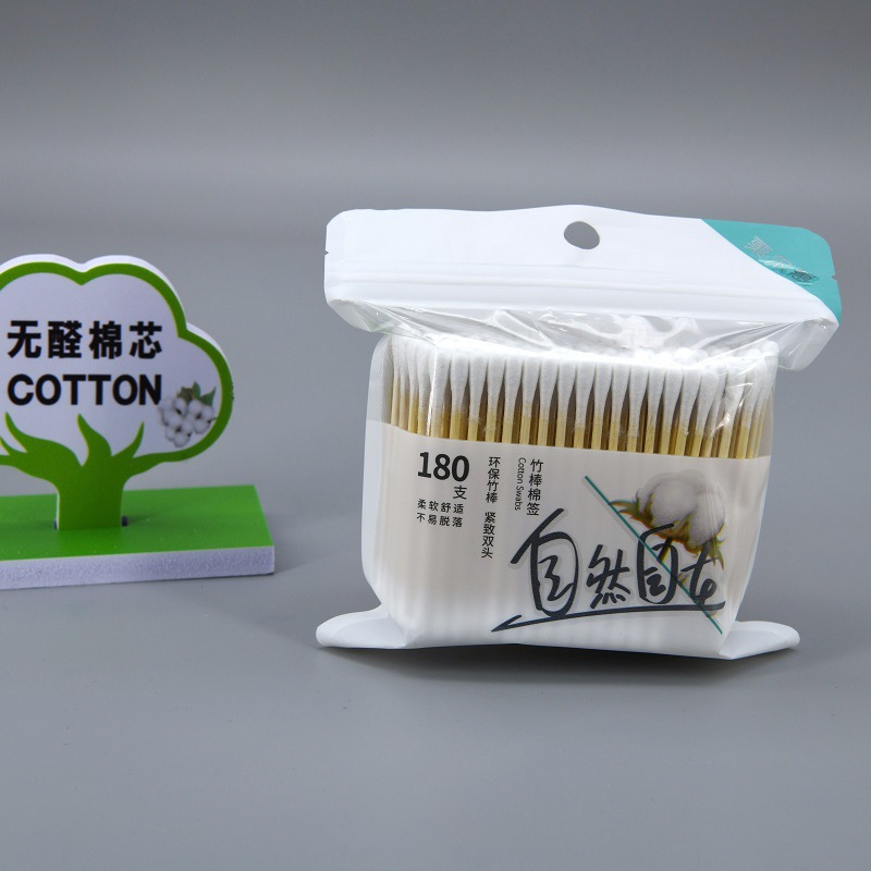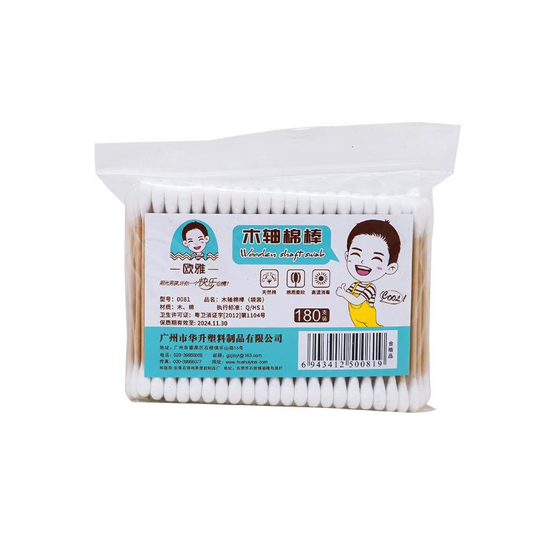 欧雅0081綿棒180本の木棒袋化粧洗浄使い捨て丸頭家庭用木軸綿棒