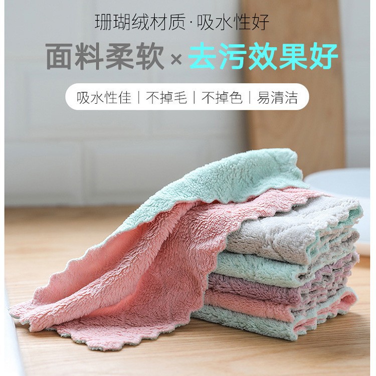 両面のサンゴのフリースの雑巾を洗って、家庭用の油をつけないで台所の超吸水タオルを拭いて、テーブルを拭いて、清潔な布を掃除します。