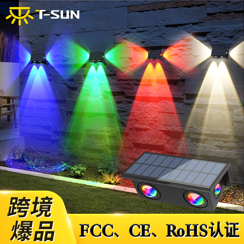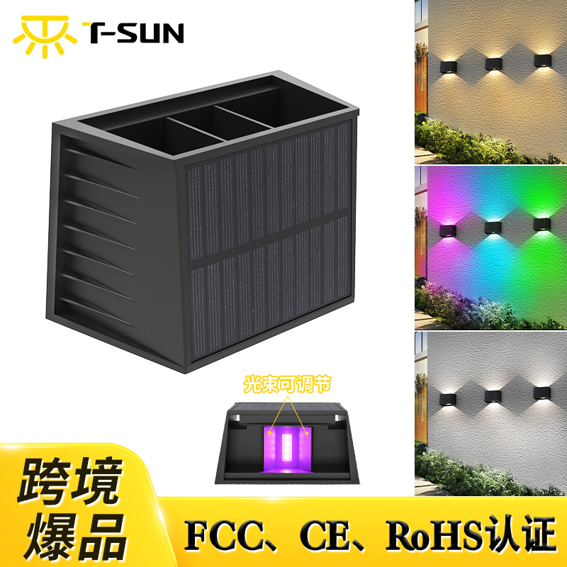 国境を越えた新しいソーラーウォールウォッシャーLED上下発光調整可能な屋外ガーデンライトrgbウォールフェンスライト