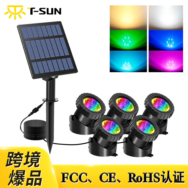 国境を越えた新しいソーラー水中ライトLED景観七色の人工岩魚タンク水中ライト屋外防水プールライト