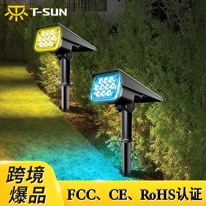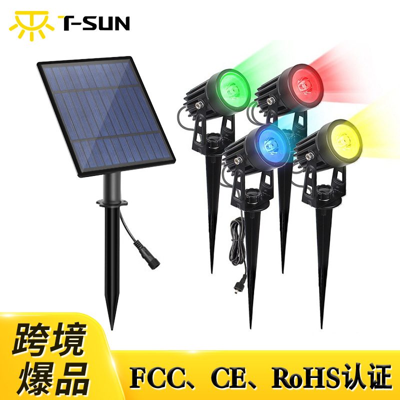 ソーラースポットライト屋外ガーデンライト屋外LED景観ガーデンRGB色調整可能ソーラー地面設置芝生ライト