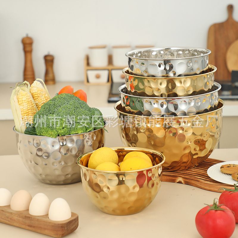 ステンレス鋼の槌目サラダボウル家庭用卵ボウルベーキングボウルフルーツボウルサラダボウルクッキングボウルサポートクロスボーダー