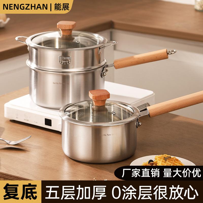 コーティングされていない 304 ステンレス鋼の小さなミルクポット、赤ちゃん用の特別な栄養補助食品ポット、家庭用ベビー炒め物オールインワンノンスティック蒸し器