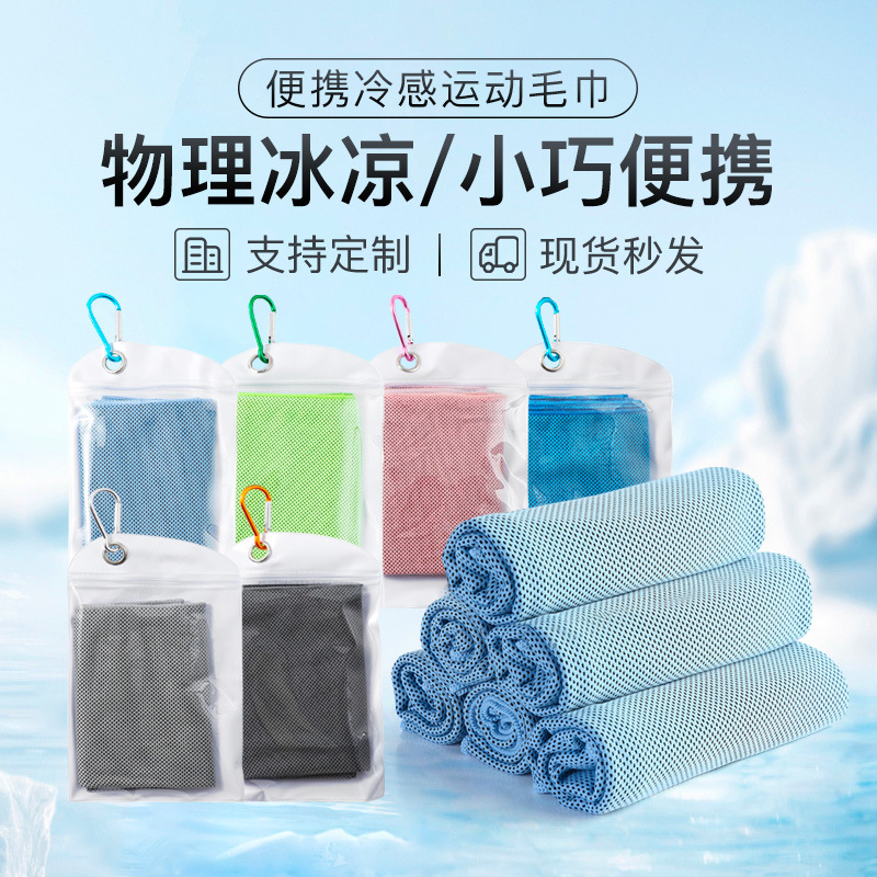 跨境冷感运动毛巾批发擦汗冰感毛巾速干冰凉巾便携式户外硅胶毛巾