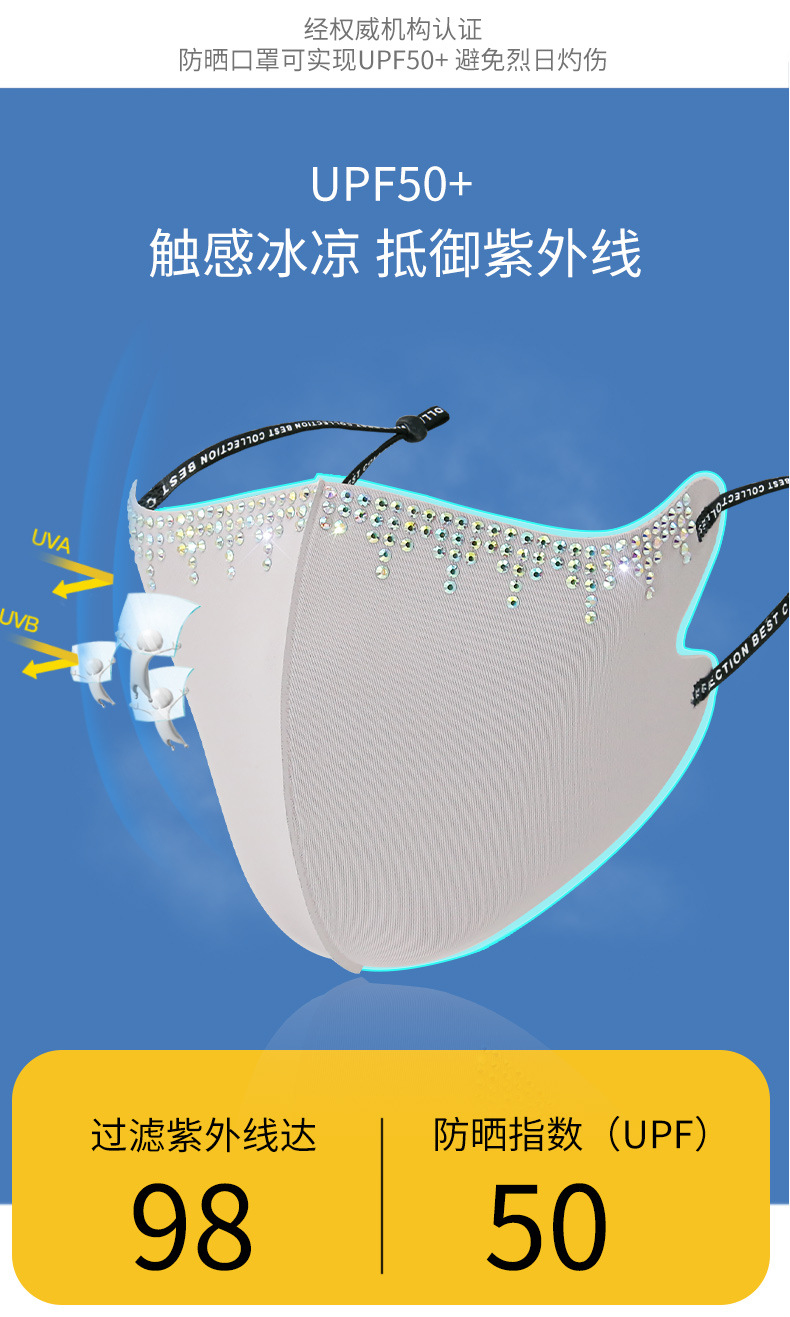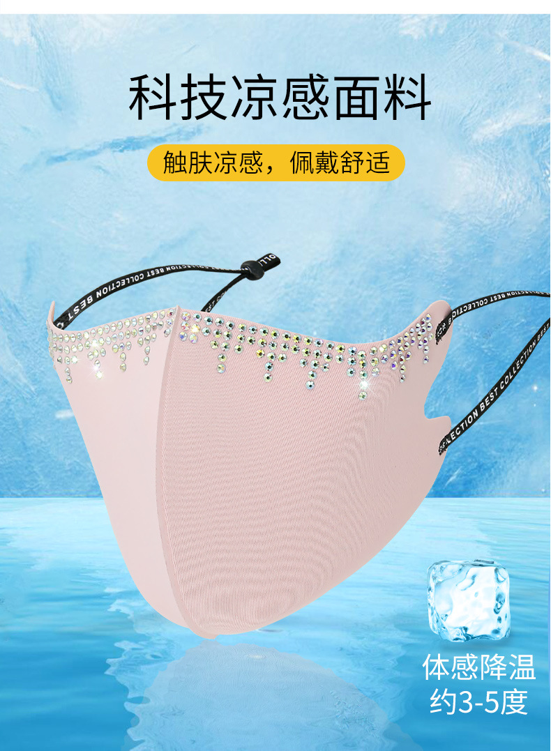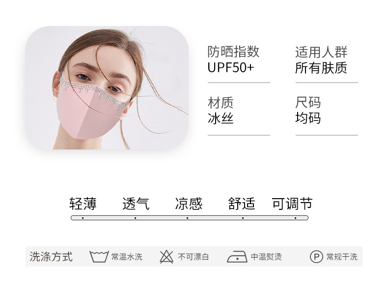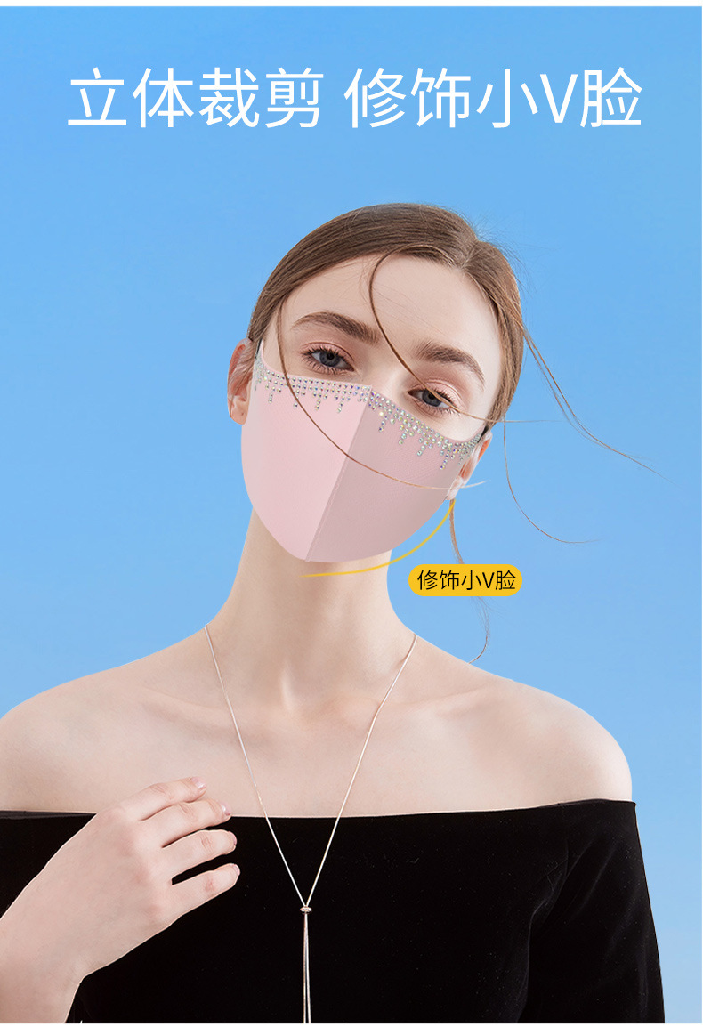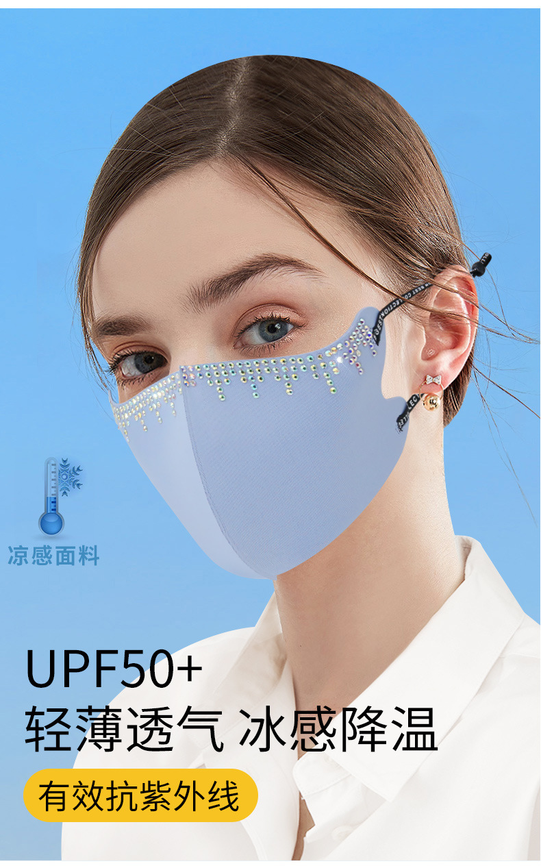 フルダイヤモンドホワイトダイヤモンドカラーダイヤモンドアイスシルクマスク女性用通気性日焼け止めアイスフィールフェイスマスクラインストーン付き洗濯可能越境保護