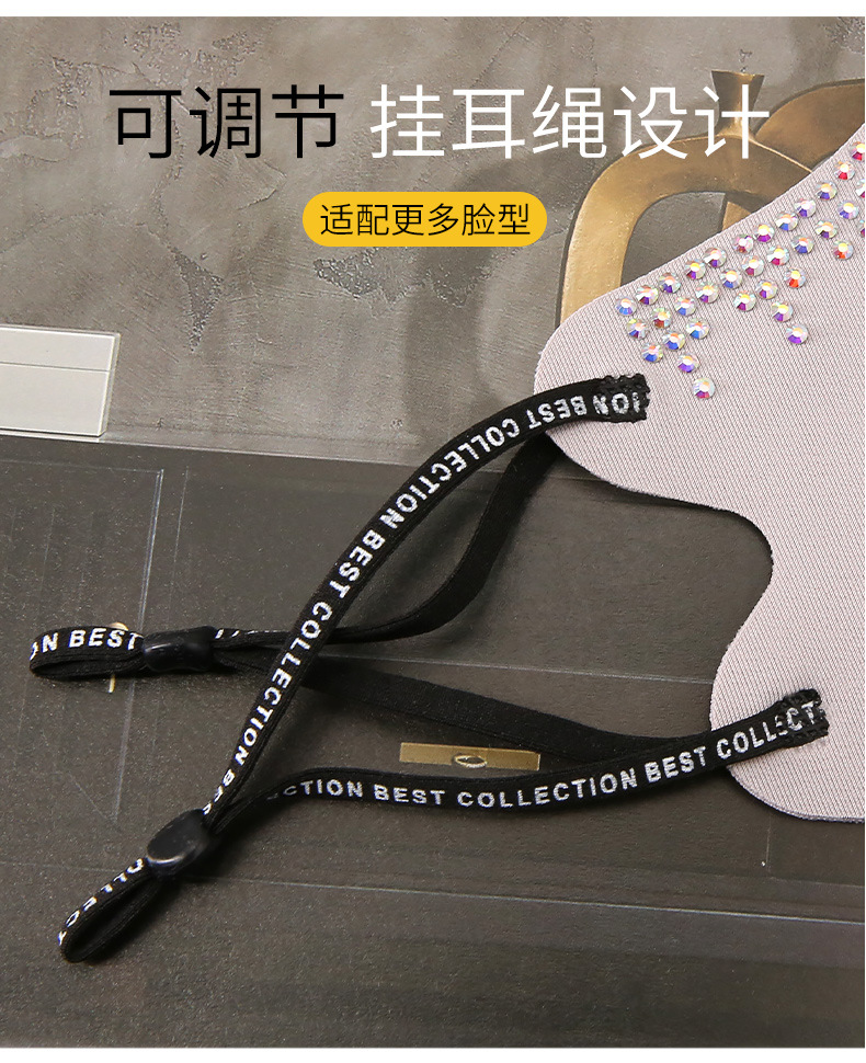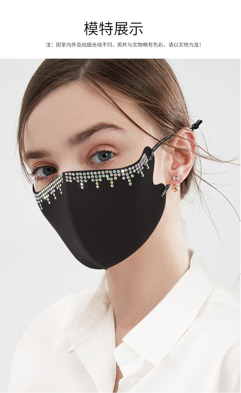 ラインストーン付きマスク、クロスボーダーラインストーン装飾、個性的なファッション、ラインストーン付き防塵マスク、欧米で人気のマスク、キラキララインストーン付き保温マスク