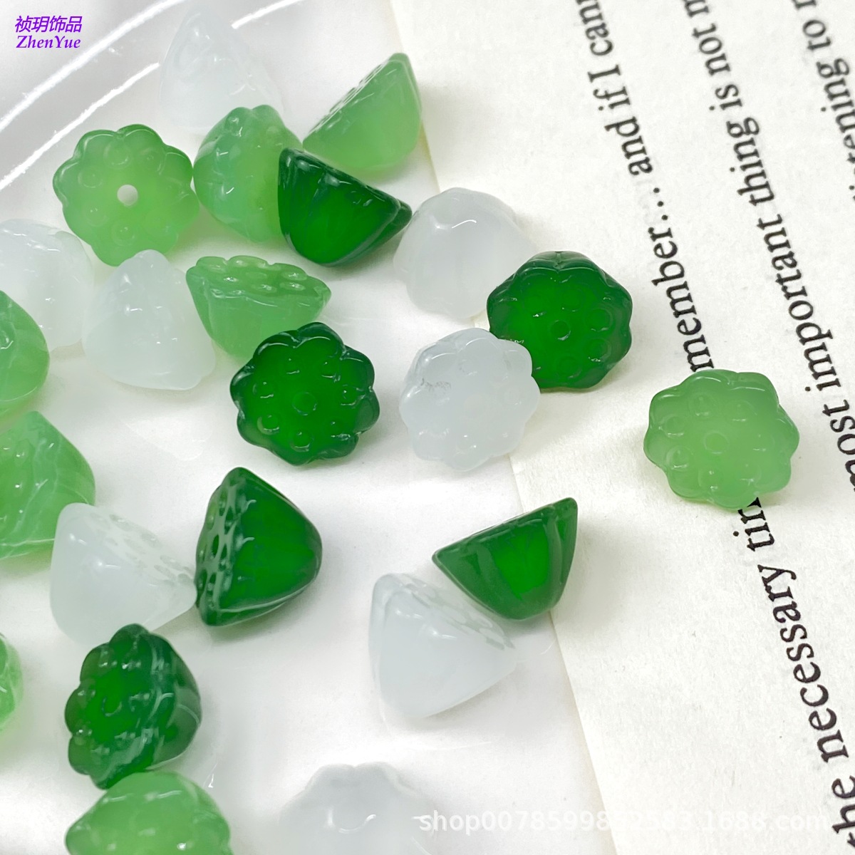 国风琉璃仿玉石莲蓬莲子diy串珠古风手链手机链发簪耳环吊坠配件