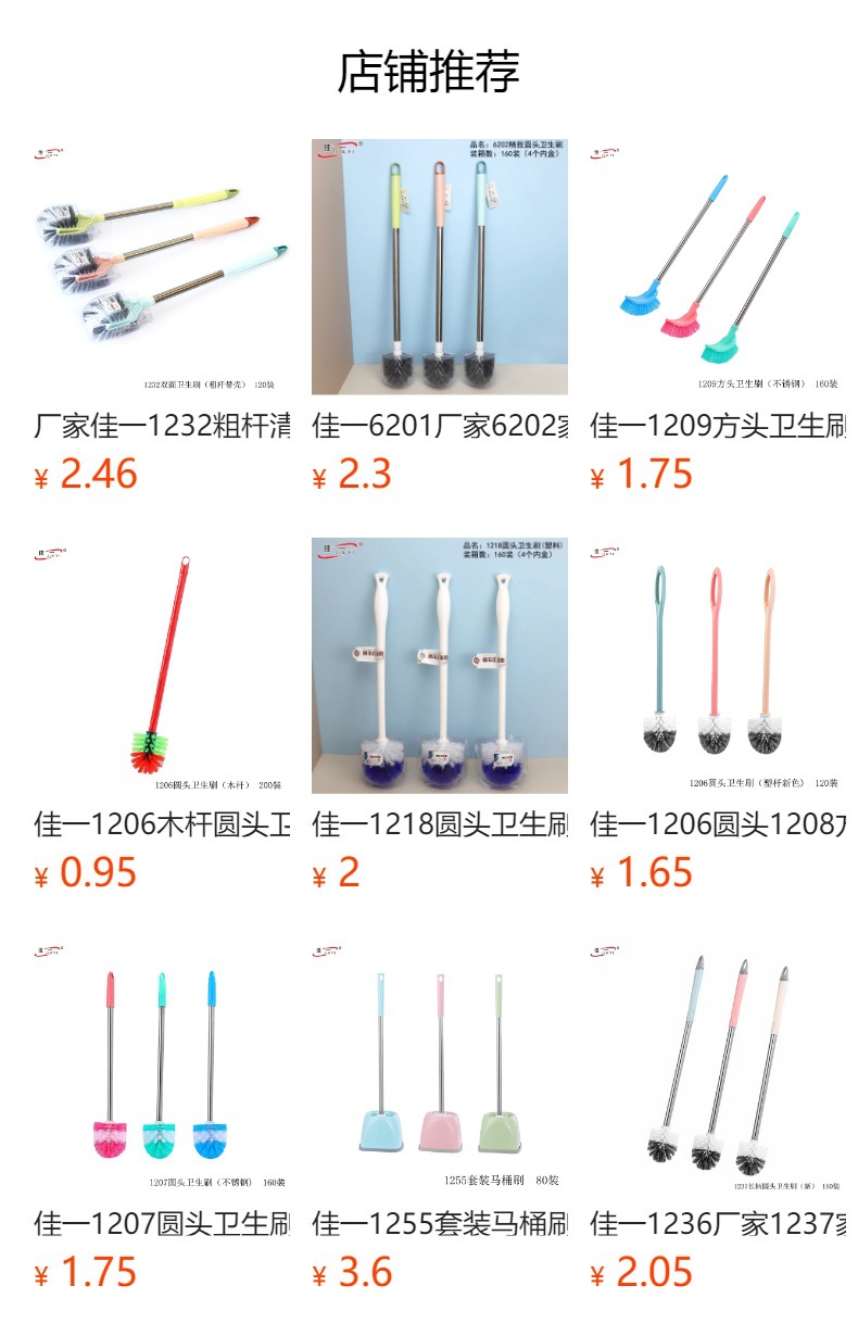 佳一1206円頭1208角頭プラスチック棒衛生ブラシ臨沂日用デパートプラスチックハンドル便器ブラシ