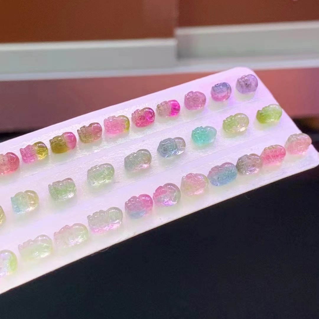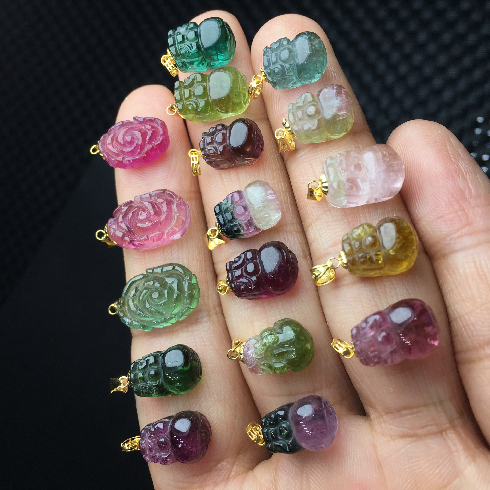天然碧璽の小さい彫刻の件の小さいピシュピストのガラスの結晶の彫刻の小さい部品の美しいスイカの色のブレスレットのdly各種