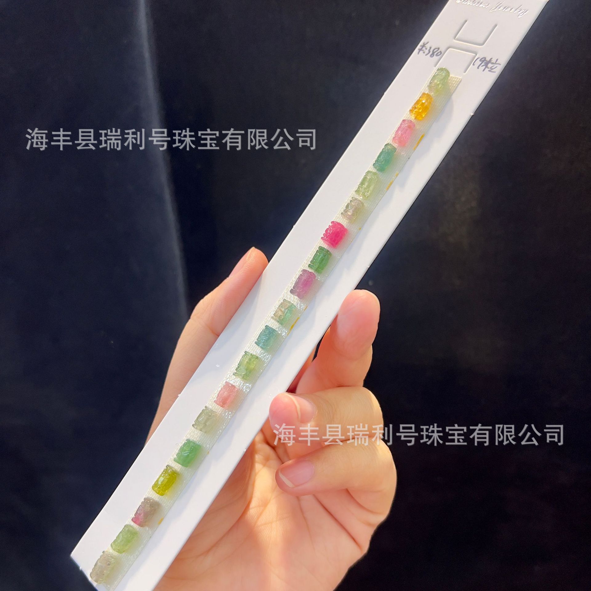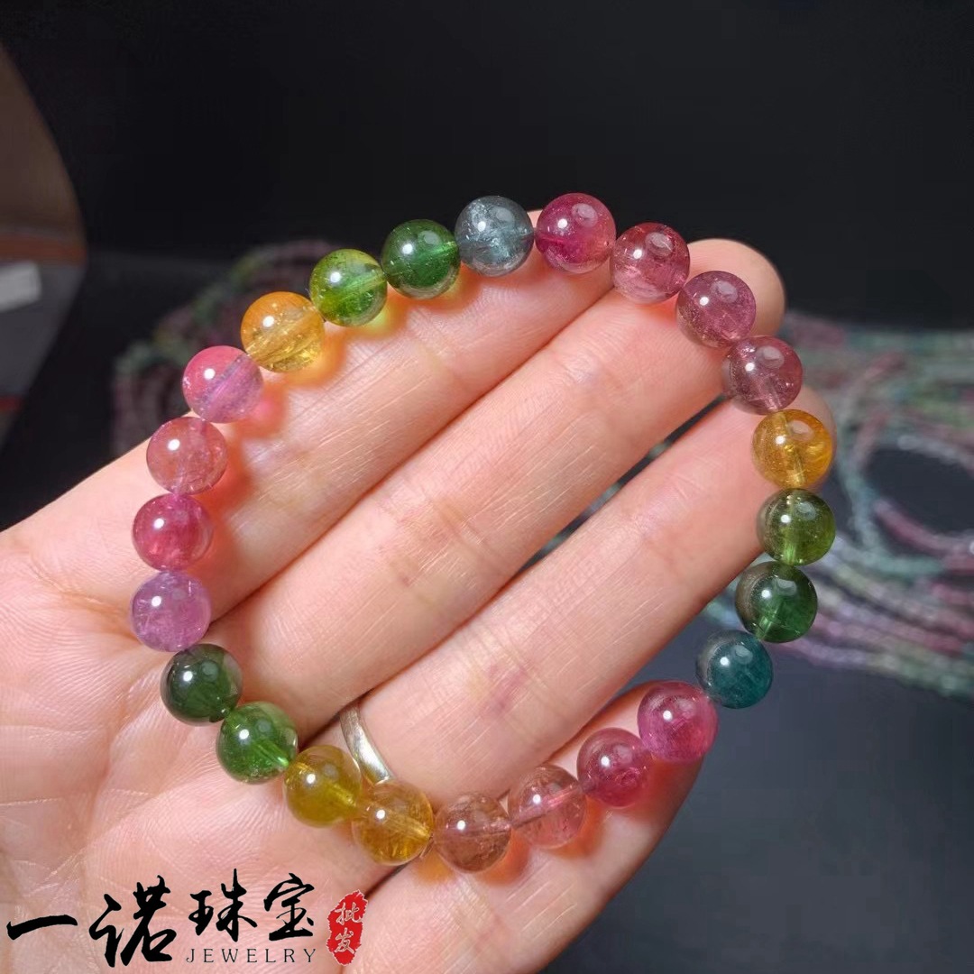 天然碧璽の手串卸売り碧璽の玉の単輪のチェーンのキャンディーの虹の配色の女性の量は大きいです。