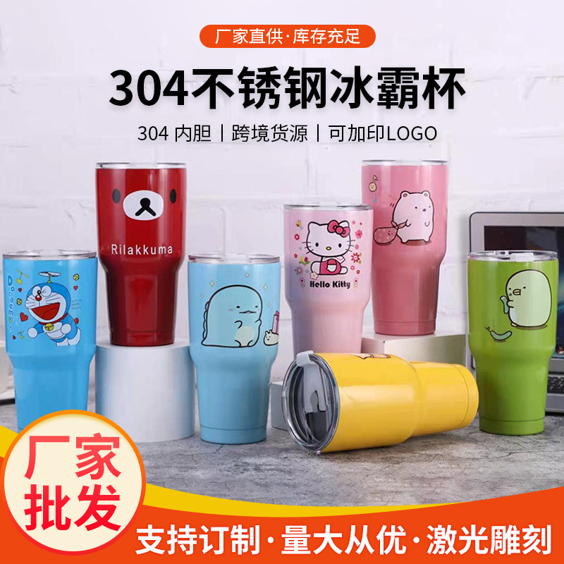 クロスボーダー304ステンレス二層車載アイスカップ屋外携帯人気アニメ保温カップ卸売りロゴ