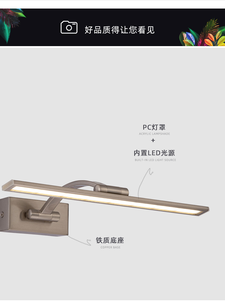 鏡の前の明かりの化粧の明かりを補います。トイレの化粧台の鏡の寮の専用の充電は穴を開けないでください。