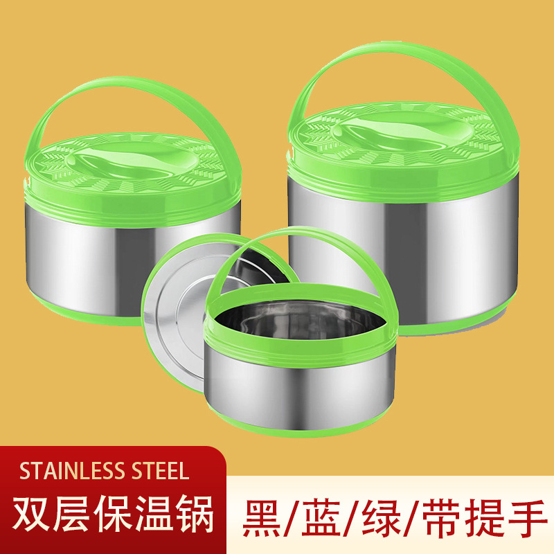 外国貿易ステンレス鋼二層ポータブル断熱ポット大容量断熱ランチボックス断熱バケツ家庭用鮮度保持ポット 3 点セット