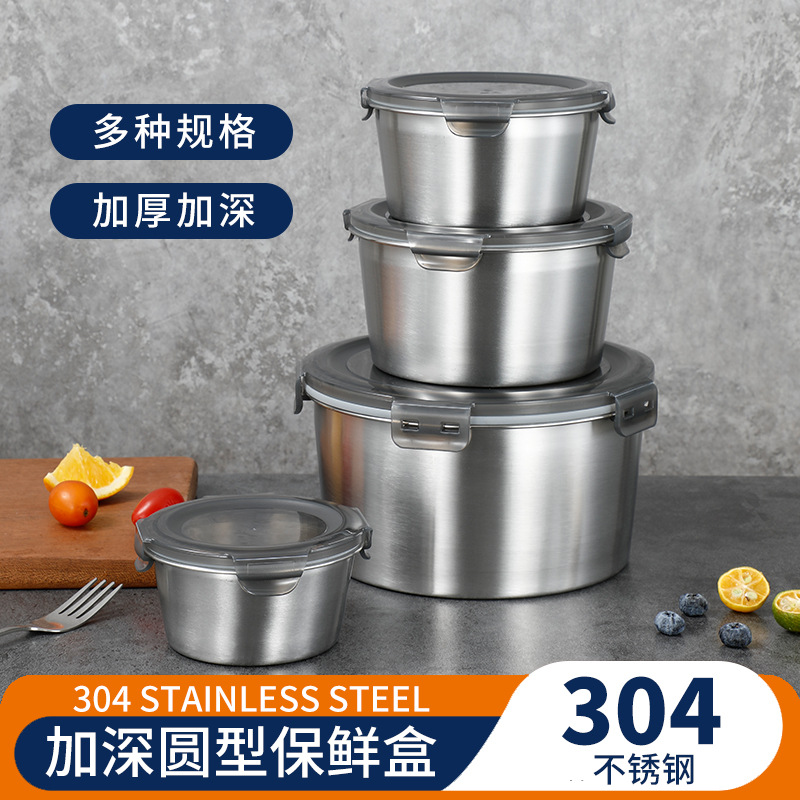 ステンレスシールタッパー304ステンレス深めキャンプ冷蔵库冷冻丸型収纳シールタッパー