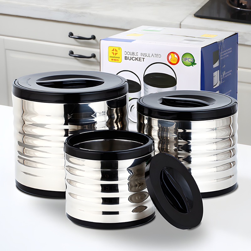 工場直販ステンレス保温ポット大容量業務用食品保存容器3点セットポータブル保温バケツ