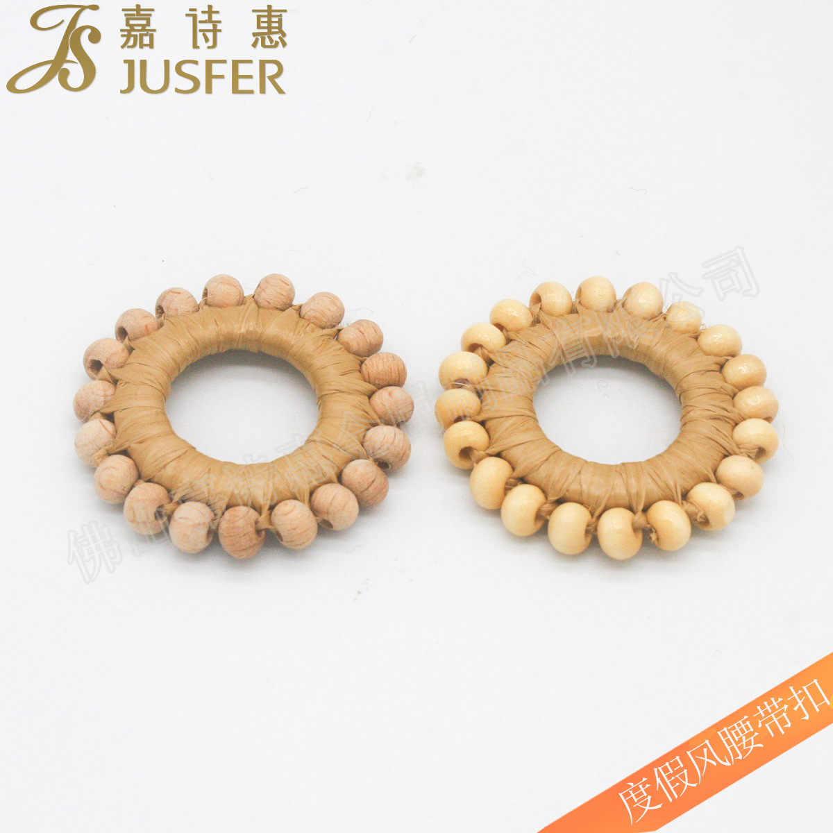強力なメーカーから直接供給される夏のベルトバックル、木製ビーズリングバックル、女性用ラフィアバックル、ホリデースタイルベルトバックル