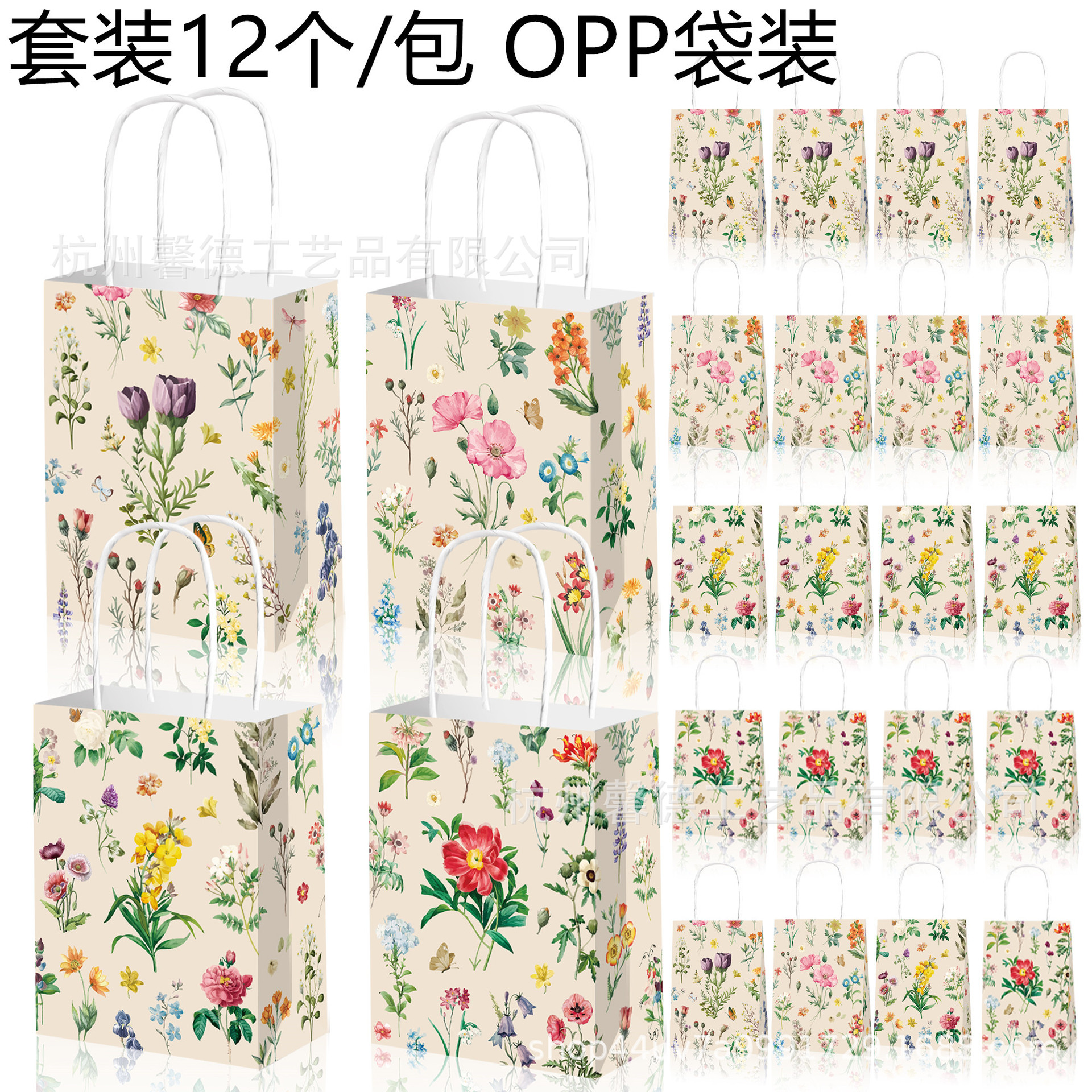 BD032鲜花婚礼感恩款 派对礼品手提纸袋(每包12个:4个款每款3个)
