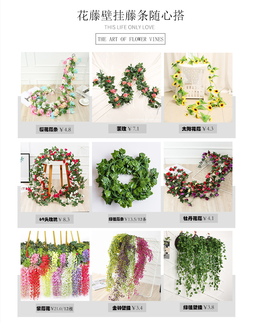 模造花造花絹花藤条蔓バラ花藤空調水管結婚祝いアーチ巻き飾り花藤