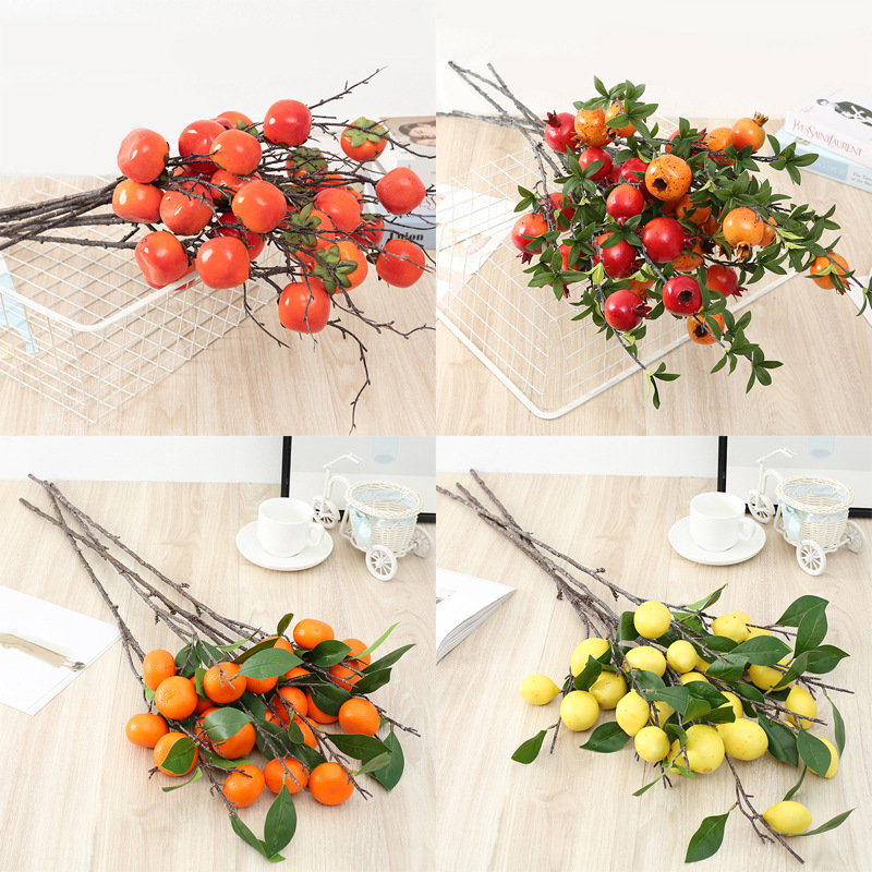 模造花柿ザクロ単枝泡果模擬果枝6頭レモン客間玄関飾り新年花