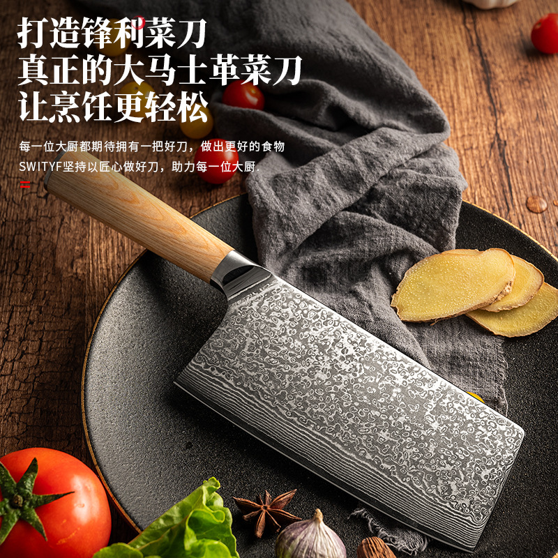 大马士革钢菜刀切片刀家用女士切肉切菜刀料理刀西式主厨刀厨房刀