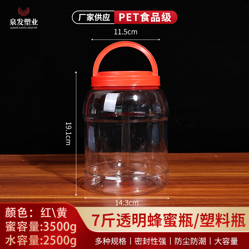 pet食品级塑料瓶7斤装加厚食品罐手提杂粮储物罐透明蜂蜜瓶厂家