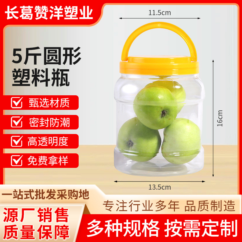 5斤圆形塑料蜂蜜瓶 密封防潮芝麻酱瓶酱菜咸菜瓶食品级加厚透明罐