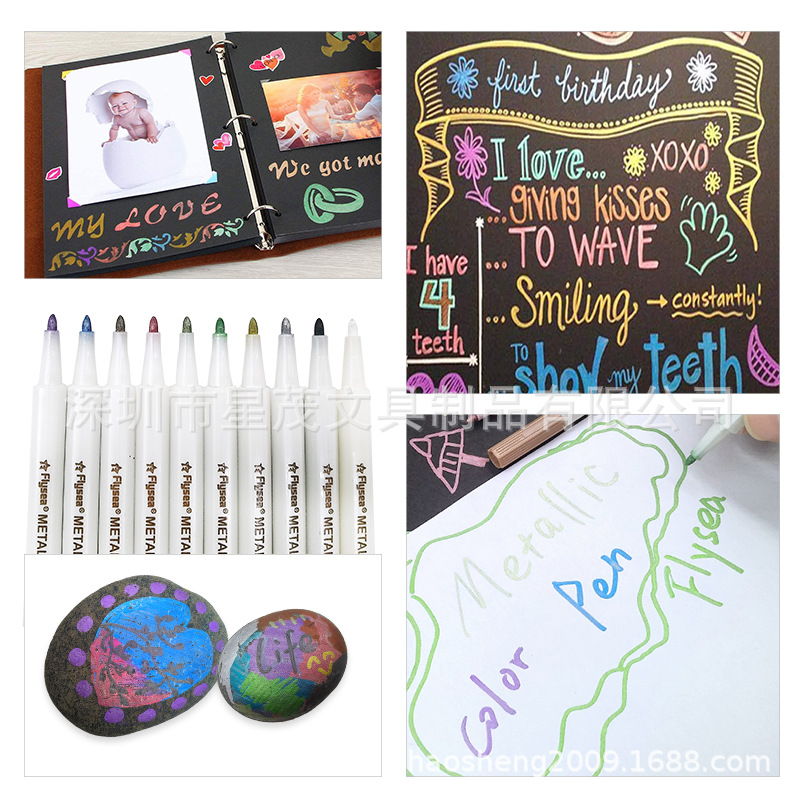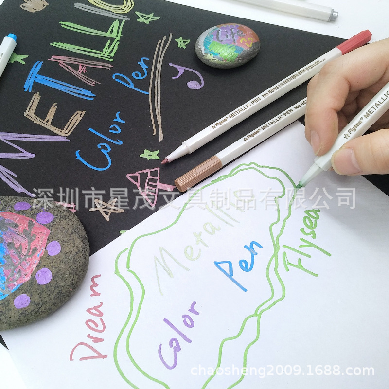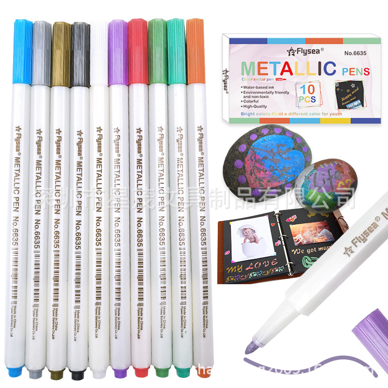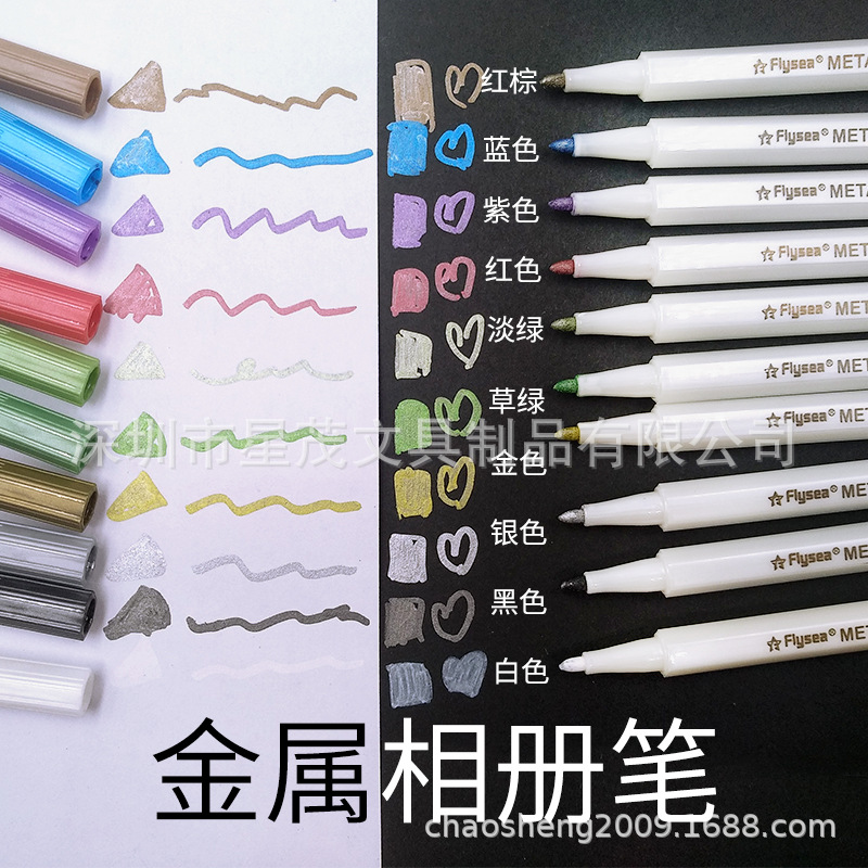 Flysea越洋手帳グリーティングカードアルバムdiy落書きペン防水珠光金属色ペンキペンマークペン