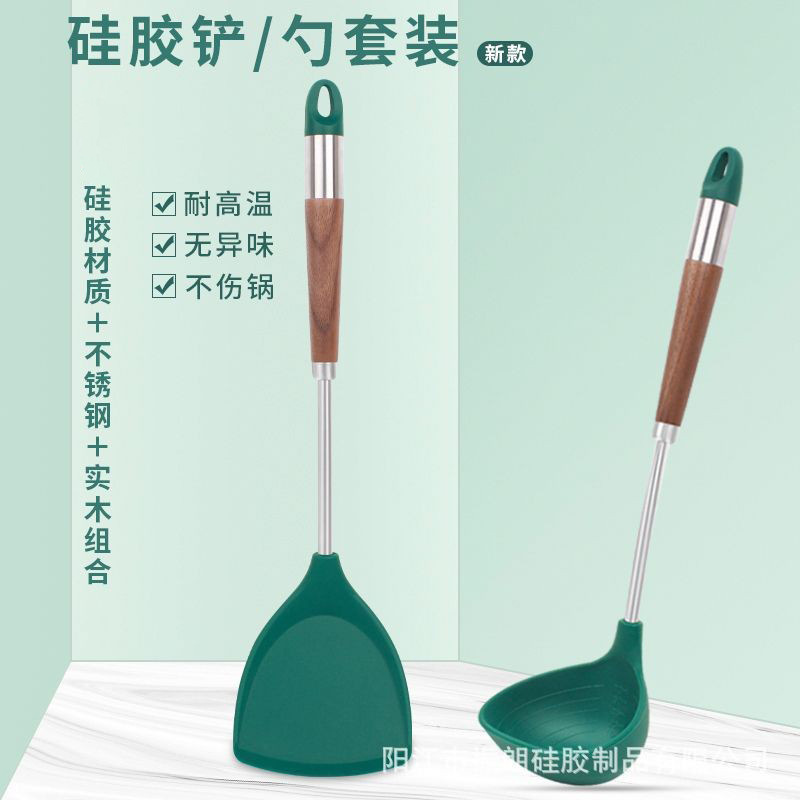 クルミ材ハンドルシリコンスープスプーンシリコンスパチュラ2個セットシリコンキッチン用品調理用シリコンスパチュラキッチン用品